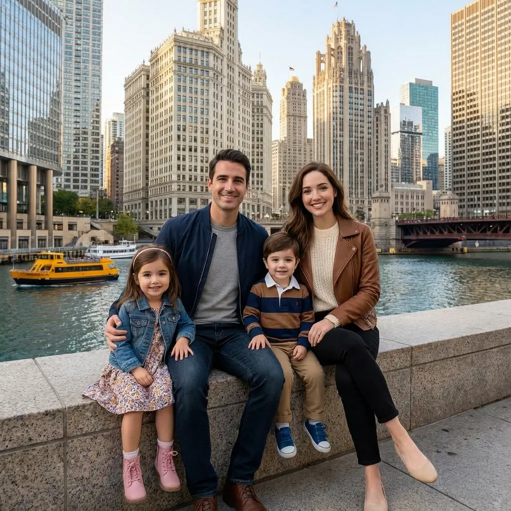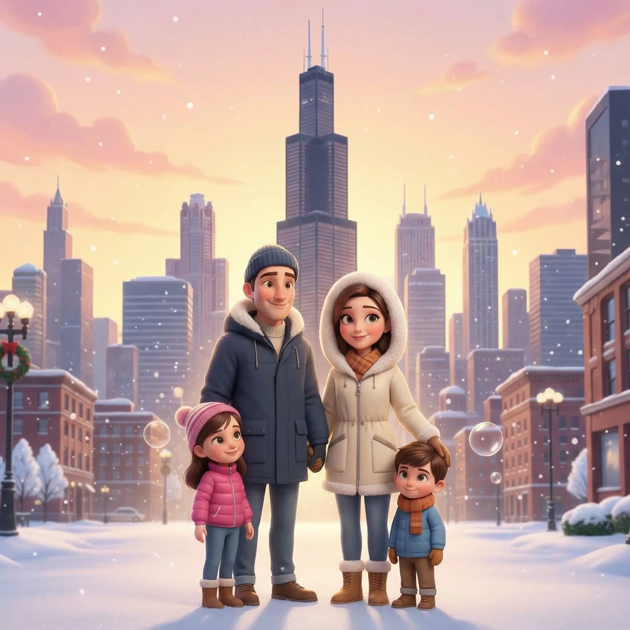 Nuestra IA recreó el skyline de Chicago con el cuidado de quien sabe que esa ciudad representa el mayor desafío y la mayor victoria de la pareja.